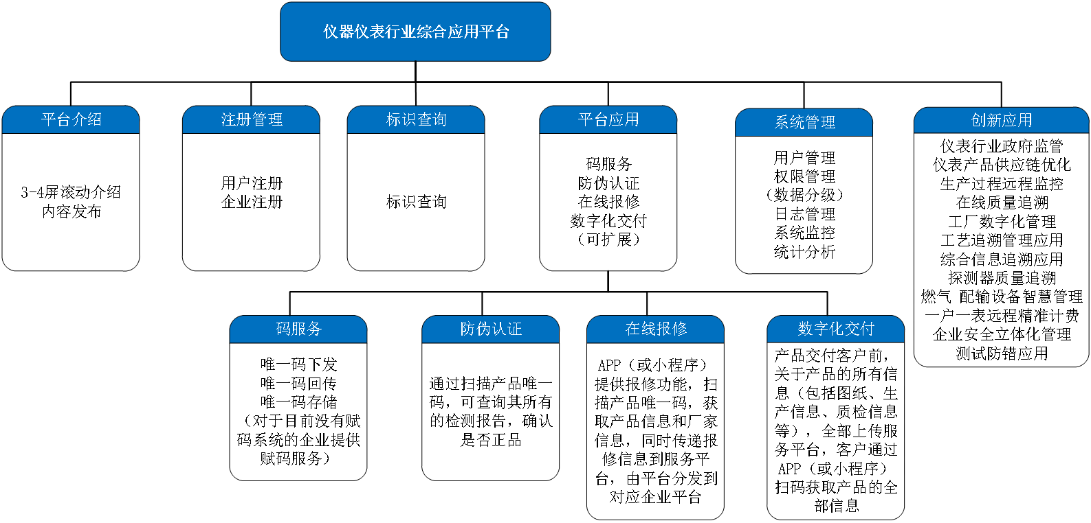 检测机构、使用单位等,各方可通过平台获取所需信息,同时促进仪表行业的产品升级、产品质量提升、产品全生命周期管理的应用。